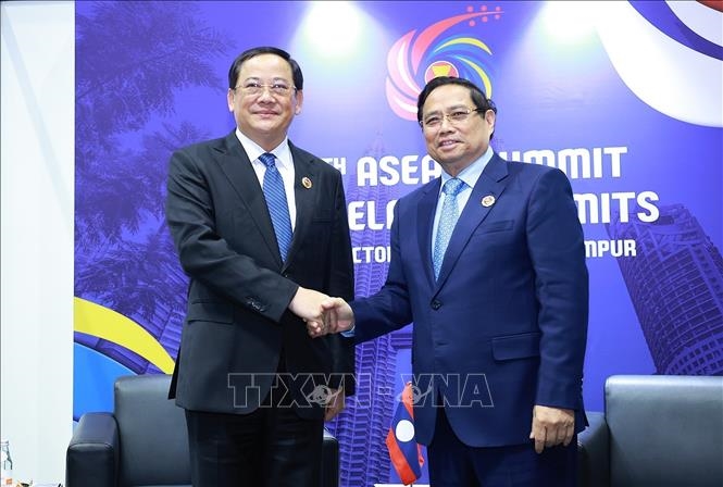 Thủ tướng Phạm Minh Chính hội kiến Thủ tướng Lào Sonexay Siphandone. Ảnh: TTXVN
