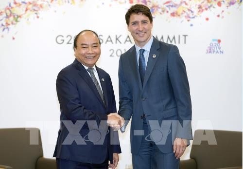 Thủ tướng Nguyễn Xuân Phúc gặp Thủ tướng Canada Justin Trudeau. Ảnh: TTXVN |
