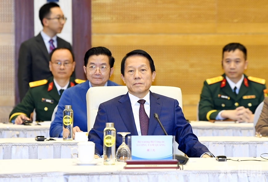 Các đồng chí Ủy viên Bộ Chính trị: Bộ trưởng Bộ Ngoại giao Lê Hoài Trung; Đại tướng Phan Văn Giang, Phó bí thư Quân uỷ Trung ương, Bộ trưởng Bộ Quốc phòng; Đại tướng Lương Tam Quang, Bộ trưởng Bộ Công an; cùng Bộ trưởng Bộ Ngoại giao Trung Quốc Vương Nghị, Bộ trưởng Bộ Quốc phòng Trung Quốc Đổng Quân và Bộ trưởng Bộ Công an Trung Quốc Vương Tiểu Hồng đồng chủ trì Hội nghị.