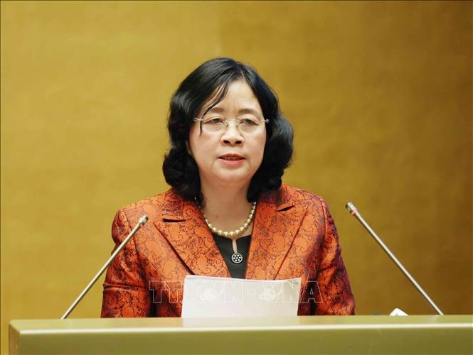 | Đồng chí Bùi Thị Minh Hoài giới thiệu Chuyên đề "Phát huy sức mạnh đại đoàn kết toàn dân tộc trong sự nghiệp xây dựng, phát triển đất nước và bảo vệ Tổ quốc trong kỷ nguyên mới". |