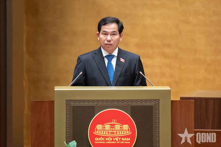 | Đồng chí Lê Quang Mạnh, Ủy viên Trung ương Đảng, Tổng Thư ký Quốc hội, Chủ nhiệm Văn phòng Quốc hội, Ủy viên Hội đồng Bầu cử quốc gia, Chánh Văn phòng Hội đồng Bầu cử quốc gia báo cáo tại hội nghị. |