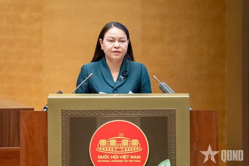 | Đồng chí Nguyễn Thị Thu Hà, Ủy viên Trung ương Đảng, Phó chủ tịch, Tổng Thư ký Ủy ban Trung ương Mặt trận Tổ quốc Việt Nam báo cáo tại hội nghị. Ảnh: PHẠM THẮNG |