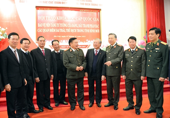 Cùng dự hội thảo có các đồng chí: Đại tướng Lê Hồng Anh, nguyên Ủy viên Bộ Chính trị, nguyên Thường trực Ban Bí thư, nguyên Bộ trưởng Bộ Công an; các đồng chí Ủy viên Trung ương Đảng: Nguyễn Mạnh Hùng, Bộ trưởng Bộ Thông tin và Truyền thông; Thuận Hữu, Tổng biên tập Báo Nhân Dân; đại biểu các ban, bộ, ngành Trung ương, địa phương.