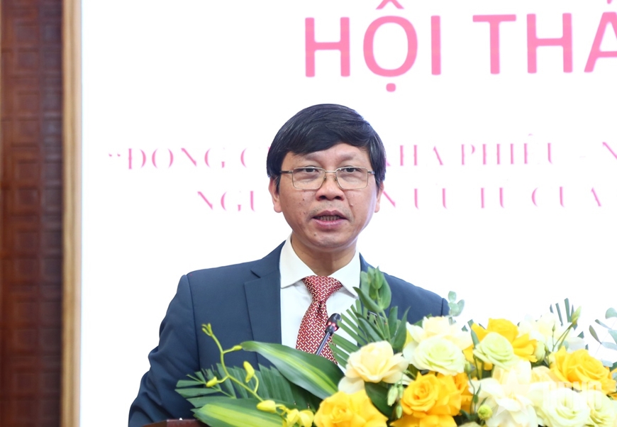 | PGS, TS Lý Việt Quang, Viện trưởng Viện Hồ Chí Minh và các lãnh tụ của Đảng (Học viện Chính trị quốc gia Hồ Chí Minh) phát biểu đề dẫn hội thảo. |
