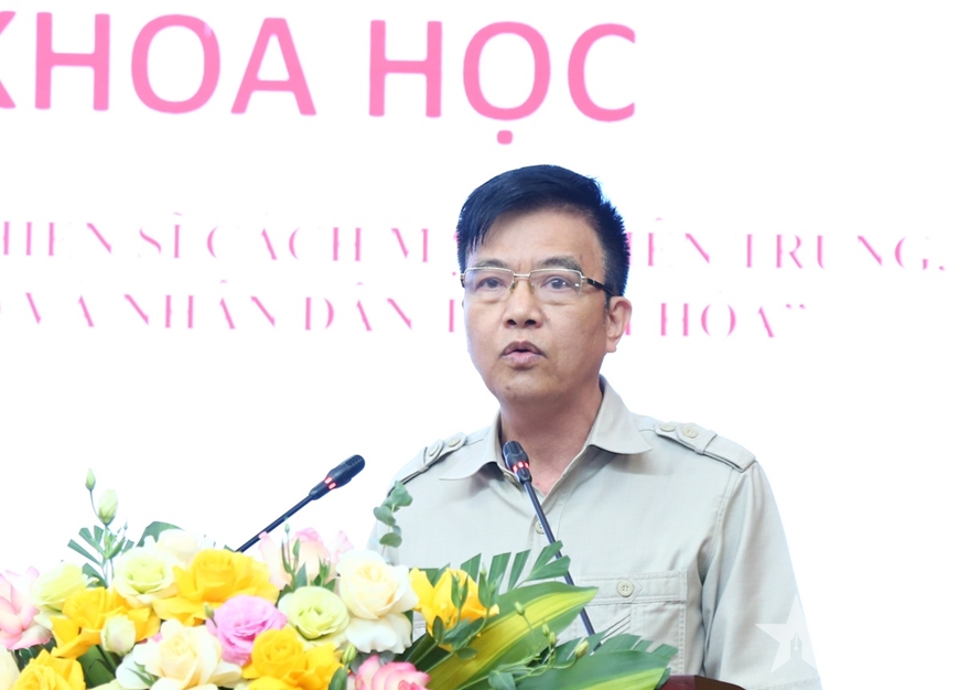| Thiếu tướng, PGS, TS Nguyễn Văn Thế, nguyên Phó giám đốc Học viện Chính trị (Bộ Quốc phòng) phát biểu tại hội thảo. |