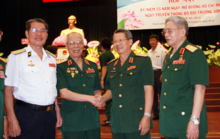 QĐND Online - Sáng 18-5, Hội Cựu chiến binh TP Hồ Chí Minh phối hợp Ban Liên lạc truyền thống Bộ đội Trường Sơn tổ chức họp mặt kỷ niệm 55 năm Ngày mở Đường Trường Sơn - Đường Hồ Chí Minh và Ngày truyền thống Bộ đội Trường Sơn (19-5-1959/19-5-2014). Hơn 450 cựu chiến binh Trường Sơn cùng đông đảo đoàn viên, thanh niên đã đến dự.
