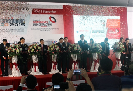 QĐND Online - Sáng 10-9 tại Trung tâm Triển lãm Quốc tế Hà Nội (91 Trần Hưng Đạo), ông Trần Xuân Việt-Phó chủ tịch UBND TP Hà Nội, ông Hoàng Quốc Vượng-Thứ trưởng Bộ Công Thương, ông Katsuro Nagai-Công sứ Kinh tế, Đại sứ quán Nhật Bản tại Việt Nam, ông Soichi Yoshimura-Phó chủ tịch điều hành, Tổ chức Xúc tiến Thương mại Nhật Bản (JETRO), ông Duangdej Yuaikwarmdee-Phó giám đốc điều hành kiêm Tổng giám đốc Công ty Reed Tradex tại Việt Nam đã cắt băng khai mạc 3 triển lãm lớn: “Triển lãm Công nghiệp Hỗ trợ Việt Nam-Nhật Bản lần thứ 6 tại Hà Nội (SIE 2015) do JETRO phối hợp cùng Cục Xúc tiến Thương mại Việt Nam (VIETRADE) tổ chức; “Triển lãm Quốc tế về Công nghệ chế tạo phụ tùng công nghiệp tại Việt Nam 2015” (Vietnam Manufacturing Expo 2015-VME) do Công ty Reed Tradex tổ chức và “Triển lãm Sản phẩm Công nghiệp Hỗ trợ Việt Nam 2015” do Trung tâm Xúc tiến Đầu tư, Thương mại và Du lịch thành phố Hà Nội phối hợp tổ chức.