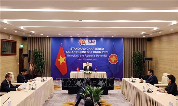 Thủ tướng nêu rõ: Thế giới và ASEAN đang chứng kiến sự bùng phát và tác động nghiêm trọng của đại dịch Covid-19. Nền kinh tế ASEAN đang phải đối mặt với sự suy giảm tăng trưởng kinh tế nặng nề. Trong bối cảnh khó khăn chồng chất khó khăn, tôi thấu hiểu và chia sẻ với các doanh nghiệp ASEAN và quốc tế về việc các hoạt động sản xuất, kinh doanh, dịch vụ bị đình trệ, đe dọa sự tồn tại của nhiều doanh nghiệp và việc làm của hàng chục triệu người lao động. Đặc biệt là khó khăn trong hàng không, du lịch, dịch vụ... đang từng ngày vượt quá sức chịu đựng.
