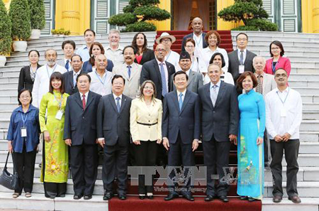 Chiều 9-9, tại Phủ Chủ tịch, Chủ tịch nước Trương Tấn Sang đã tiếp Đoàn đại biểu quốc tế tham dự Hội nghị khu vực châu Á-Thái Bình Dương đoàn kết với Cu-ba lần thứ 7.