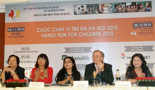 QĐND Online - Chiều 24-11, tại Hà Nội, Đại sứ quán Canada, Hội Hữu nghị Việt Nam – Canada, Liên hiệp các tổ chức Hữu nghị Hà Nội, Tập đoàn Manulife Việt Nam và Khách sạn Metropole tổ chức họp báo trao đổi thông tin về “Cuộc chạy vì trẻ em Hà Nội (HRC) 2015”. Đây là hoạt động thường niên nhằm gây quỹ để hỗ trợ việc chữa trị cho các em nhỏ có hoàn cảnh khó khăn, không may mắc bệnh ung thư và tim bẩm sinh.