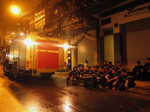 Một số người dân có mặt gần hiện trường cho biết: Khói bốc ra từ tầng tum phía trên căn nhà của bà Doãn Minh Hiền, sau đó lửa bùng lên và lan ra các căn bên cạnh. Nhận được tin báo của người dân, lực lượng Cảnh sát phòng cháy chữa cháy Công an thành phố Hà Nội đã điều 5 xe cứu hỏa và xe tiếp nước cùng hàng chục cán bộ, chiến sĩ tới hiện trường để dập lửa. Khoảng hơn 1 tiếng sau, đám cháy đã được lực lượng chức năng khống chế. Đại diện lực lượng tham gia cứu hỏa tại hiện trường cho biết không có thiệt hại về người, tuy nhiên, theo quan sát ban đầu của phóng viên, vụ hỏa hoạn đã phá hủy hoàn toàn diện tích tầng tum phía trên của nhà bà Hiền và hai căn gác liền kề.