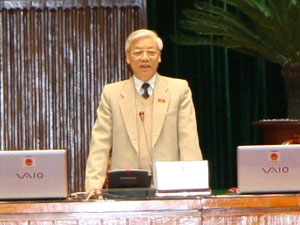 | Chủ tịch Quốc hội Nguyễn Phú Trọng phát biểu kết thúc phiên chất vấn và trả lời chất vấn. (Ảnh: Nguyễn Dân/TTXVN) |