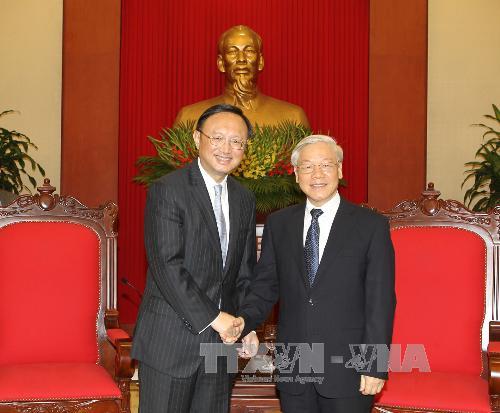 Tổng Bí thư Nguyễn Phú Trọng tiếp Ủy viên Quốc vụ Trung Quốc Dương Khiết Trì. Ảnh: TTXVN