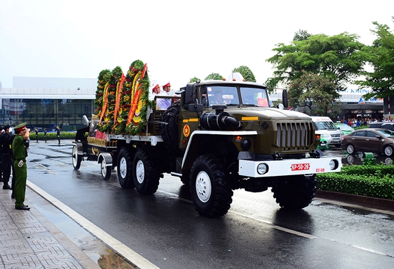Đoàn xe đưa linh cữu nguyên Chủ tịch nước, Đại tướng Lê Đức Anh rời sân bay Tân Sơn Nhất.