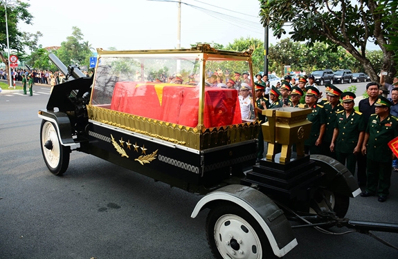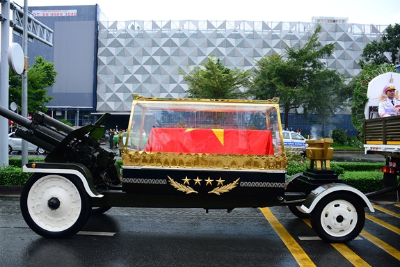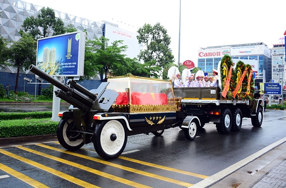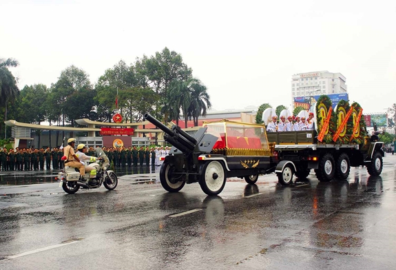 Linh xa đưa lĩnh cữu nguyên Chủ tịch nước, Đại tướng Lê Đức Anh đi qua các tuyến đường ở TP Hồ Chí Minh. |