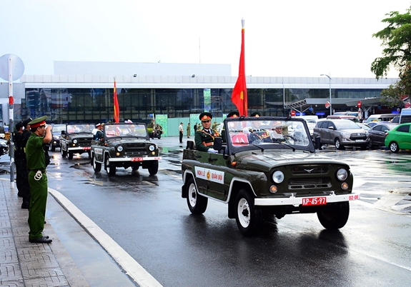 Đoàn xe đưa tiễn nguyên Chủ tịch nước, Đại tướng Lê Đức Anh đi qua cổng Bộ tư lệnh Quân khu 7. |