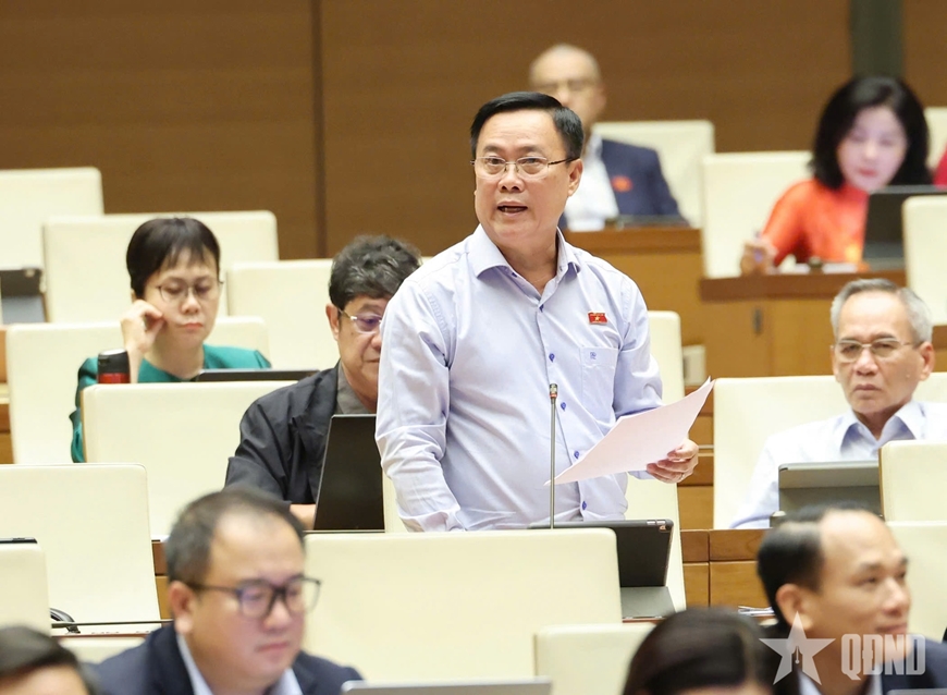 | Đại biểu Nguyễn Quốc Hận (đoàn Cà Mau) phát biểu thảo luận. Ảnh: TRỌNG HẢI |