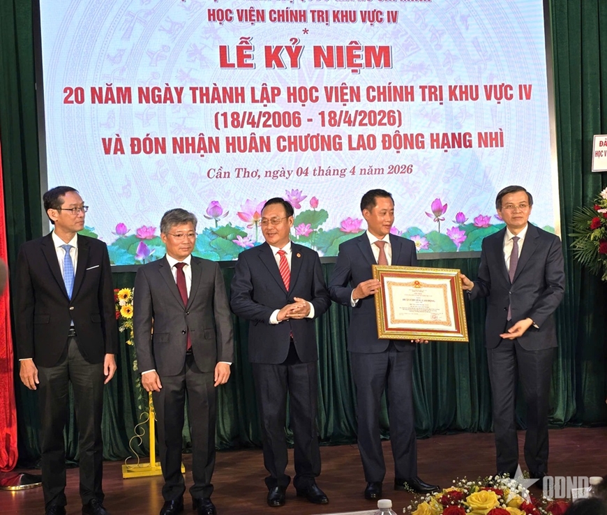 Nhân dịp này, thừa ủy quyền của Chủ tịch nước, PGS, TS Đoàn Minh Huấn đã trao Huân chương Lao động hạng Nhì tặng Học viện Chính trị khu vực IV, ghi nhận những thành tích xuất sắc trong công tác đào tạo, nghiên cứu khoa học và đóng góp vào sự nghiệp xây dựng và bảo vệ Tổ quốc.