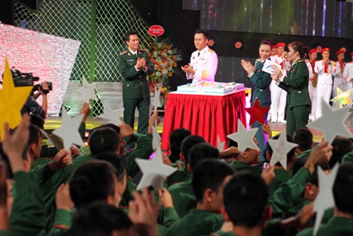 | Ban tổ chức và các chiến sĩ hát vang bài hát Chúc mừng sinh nhật, bên chiếc bánh kỷ niệm 9 năm của chương trình. |