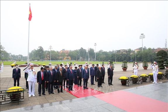 Đoàn đại biểu Lãnh đạo Đảng, Nhà nước đặt vòng hoa và vào Lăng viếng Chủ tịch Hồ Chí Minh. |
