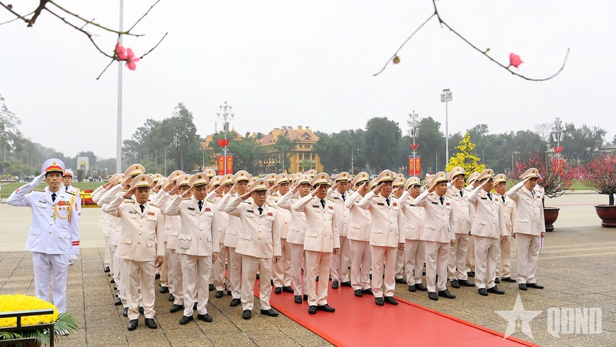 Cũng trong sáng cùng ngày, các đoàn đại biểu: Đảng ủy Công an Trung ương, Bộ Công an; Thành ủy, HĐND, UBND TP Hà Nội... đến đặt vòng hoa, vào Lăng viếng Chủ tịch Hồ Chí Minh; đặt vòng hoa, tưởng niệm các Anh hùng liệt sĩ.