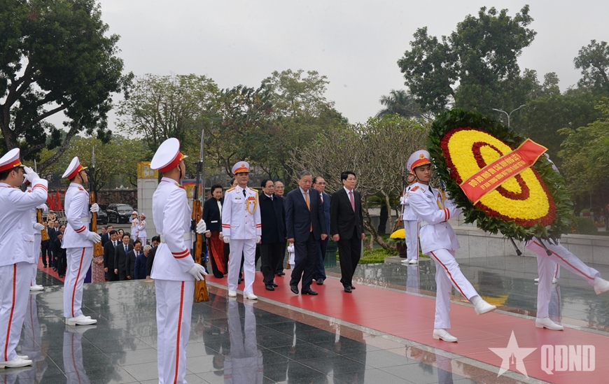 | Tổng Bí thư Tô Lâm tưởng niệm các vị tiền bối cách mạng và các Anh hùng liệt sĩ. |