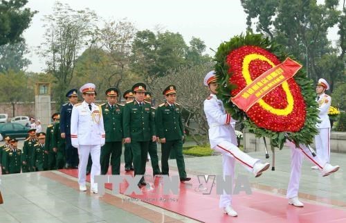 Đoàn Quân ủy Trung ương - Bộ Quốc phòng đặt vòng hoa tại Đài tưởng niệm các Anh hùng Liệt sĩ. Ảnh: TTXVN |