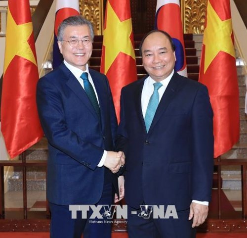 Tổng thống Moon Jae-in khẳng định Hàn Quốc coi trọng phát triển quan hệ Đối tác hợp tác chiến lược với Việt Nam, xác định Việt Nam là đối tác quan trọng trong chính sách hướng Nam mới; nhất trí cùng Việt Nam không ngừng nỗ lực mở rộng và đưa các lĩnh vực hợp tác giữa hai nước đi vào chiều sâu; hoan nghênh việc lãnh đạo Bộ Ngoại giao và các bộ, ngành, địa phương hai nước duy trì gặp gỡ, tiếp xúc thường xuyên; tiếp tục thúc đẩy hợp tác công nghiệp phụ trợ, chế tạo ô tô nhằm từng bước cân bằng thương mại; khẳng định sẽ tiếp tục hỗ trợ Việt Nam phát triển nguồn nhân lực, khoa học công nghệ, công nghệ thông tin, quản lý môi trường, nông nghiệp; mở rộng hợp tác về giao thông, năng lượng, cơ sở hạ tầng, đô thị thông minh; đồng thời Hàn Quốc sẽ tiếp tục tăng cường triển khai các dự án hỗ trợ gia đình đa văn hóa Việt - Hàn, các cô dâu Việt Nam lấy chồng Hàn Quốc tại Hàn Quốc và ở Việt Nam; mong muốn tạo điều kiện cho doanh nghiệp Hàn Quốc tham gia các dự án như dự án đường cao tốc Bắc-Nam, dự án sân bay Long Thành.