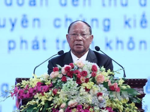 Chủ tịch Quốc hội Vương quốc Campuchia Samdech Heng Samrin phát biểu tại Lễ kỷ niệm. Ảnh: TTXVN