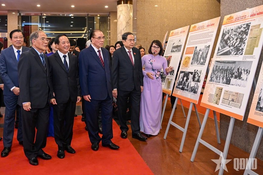 | Các đại biểu tham quan Trưng bày ảnh “Khoảnh khắc Diên Hồng”. |