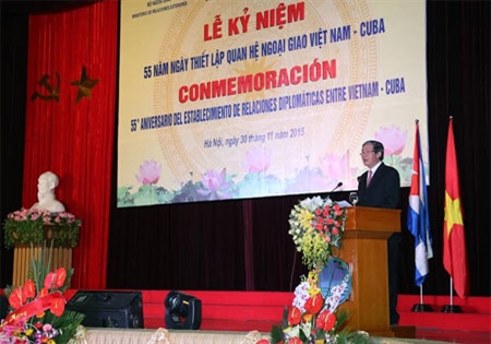 Phát biểu tại lễ kỷ niệm, đồng chí Đinh Thế Huynh, Ủy viên Bộ Chính trị, Bí thư Trung ương Đảng, Trưởng Ban Tuyên giáo Trung ương, đã ôn lại chặng đường 55 năm rất đỗi tự hào của mối quan hệ đặc biệt Việt Nam - Cu-ba. Vào đầu thập kỷ 60 của thế kỷ trước, thời điểm cam go trong sự nghiệp Cách mạng của mỗi nước, Việt Nam và Cu-ba đã xích lại gần nhau và chính thức thiết lập quan hệ ngoại giao vào ngày 2-12-1960. Sự kiện này diễn ra như một điều tất yếu, phù hợp với đòi hỏi của thực tiễn cách mạng mỗi nước, đáp ứng nguyện vọng và lợi ích của nhân dân hai nước. 55 năm qua, lịch sử quan hệ hai nước đầy ắp các sự kiện trọng đại, không ngừng được vun đắp, phát triển lên tầm cao "đoàn kết anh em, hợp tác toàn diện và hoàn toàn tin cậy lẫn nhau”.