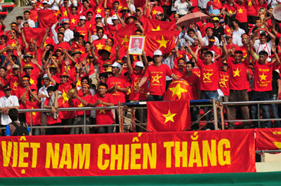 Cổ động viên Việt Nam. Ảnh: XUÂN HƯƠNG.