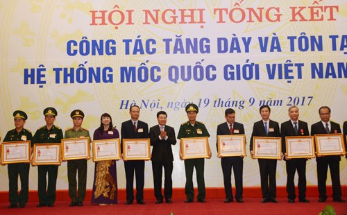 * Tại Hội nghị, Bộ Ngoại giao đã công bố Quyết định và trao tặng các hình thức khen thưởng của Chủ tịch nước, Thủ tướng Chính phủ và Bộ trưởng Bộ Ngoại giao cho các tập thể, cá nhân có thành tích xuất sắc trong công tác tăng dày và tôn tạo hệ thống mốc Quốc giới Việt Nam – Lào.