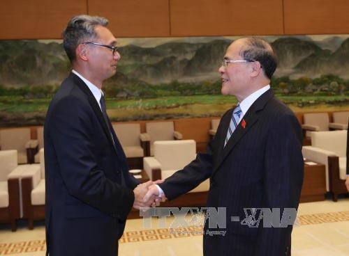 | Chủ tịch Quốc hội Nguyễn Sinh Hùng tiếp Đoàn công tác Giám đốc Điều hành của một số Nhóm nước trong Nhóm Ngân hàng Thế giới do Giám đốc điều hành của Indonesia Rionald Silaban làm trưởng đoàn. Ảnh: An Đăng - TTXVN |