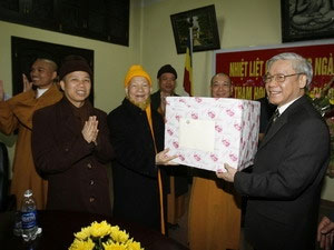 Cùng ngày, Chủ tịch Quốc hội Nguyễn Phú Trọng đã đến thăm, chúc Tết các vị hòa thượng, thượng tọa, tăng, ni sinh Học viện Phật giáo Việt Nam ở xã Phù Linh, huyện Sóc Sơn, Hà Nội.