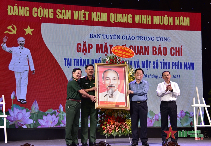 Chủ trì buổi gặp mặt có các đồng chí: Nguyễn Văn Nên, Ủy viên Bộ Chính trị, Bí thư Thành ủy TP Hồ Chí Minh; Nguyễn Trọng Nghĩa, Bí thư Trung ương Đảng, Trưởng Ban Tuyên giáo Trung ương; Trung tướng Trịnh Văn Quyết, Ủy viên Trung ương Đảng, Phó chủ nhiệm Tổng cục Chính trị; Trung tướng Trần Hoài Trung, Bí thư Đảng ủy, Chính ủy Quân khu 7; đồng chí Phan Xuân Thủy, Phó trưởng Ban Tuyên giáo Trung ương. Dự buổi gặp mặt còn có đồng chí Thiếu tướng Nguyễn Trường Thắng, Ủy viên Trung ương Đảng, Tư lệnh Quân khu 7 cùng hơn 200 đại biểu là lãnh đạo các ban, ngành, cơ quan chủ quản, cơ quan báo chí tại TP Hồ Chí Minh và các tỉnh phía Nam.