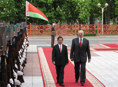 | Lễ đón Chủ tịch nước Nguyễn Minh Triết tại Belarus. |