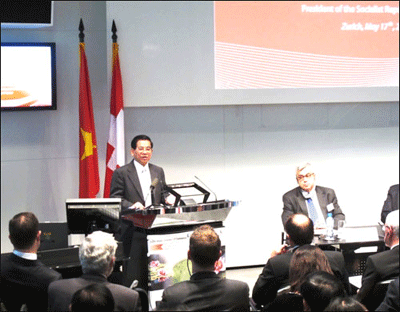 | Chủ tịch nước Nguyễn Minh Triết phát biểu tại diễn đàn Doanh nghiệp Việt Nam - Thụy Sĩ. |