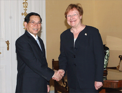 | Chủ tịch nước Nguyễn Minh Triết hội kiến với Tổng thống Phần Lan Tarja Halonen. |