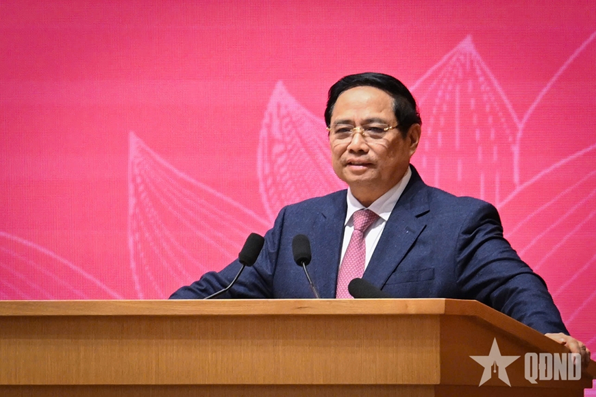 Thủ tướng Phạm Minh Chính phát biểu tại Hội nghị tổng kết công tác ngành ngoại giao năm 2025. Ảnh: VIỆT TRUNG