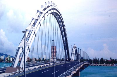 QĐND Online- Đà Nẵng được thiên nhiên ưu đãi ban tặng dòng Hàn giang thơ mộng. Như một dải lụa xanh, Hàn giang vắt dọc thành phố. Trước đây Đà thành chỉ có hai cây cầu, một cầu đường bộ, một cầu đường sắt (chế độ cũ gọi là cầu Trịnh Minh Thế). Sau giải phóng, hai cây cầu được mang tên hai người anh hùng của quê hương đất Quảng là: Nguyễn Văn Trỗi và Trần Thị Lý. Người dân từ bờ đông sang bờ tây và ngược lại chủ yếu trên những chiếc đò ngang bé nhỏ. Đêm đêm đứng từ bờ tây nhìn sang bờ đông chỉ thấy những đốm sáng lập lòe trong những căn nhà chồ xập xệ...Vậy mà chỉ trong thời gian ngắn, kể từ khi trở thành thành phố trực thuộc Trung ương, Đà Nẵng như được lột xác, trở thành một thành phố trẻ năng động, phát triển, trở thành điểm sáng và là động lực, là đầu tầu của khu vực. Trên đà phát triển ấy, không thể không nói đến những sự ra đời của những cây cầu. Cách đây 9 năm, Đà Nẵng đã chính thức đưa vào sử dụng cầu quay Sông Hàn - cây cầu được xem là sản phẩm của ý Đảng - lòng dân. Cầu quay Sông Hàn đã tạo nên một vẻ đẹp mới lạ, một biểu tượng đáng tự hào của người dân Đà Nẵng. Cây cầu đưa vào sử dụng đã kéo đôi bờ xích lại gần nhau, làm cho khu vực Sơn Trà, Ngũ Hành Sơn, nhất là vùng ven biển nhanh chóng trở thành khu vực thu hút đầu tư và du lịch hấp dẫn. Hàng ngàn hộ dân sống ở những khu nhà chồ, những gia đình sống chen chúc trong con thuyền nhỏ mưu sinh trên sông nước từ bao đời được lên bờ định cư... Sự đổi thay kỳ diệu này không chỉ làm cho nhiều người dân nơi đây mà cả nước cũng ngỡ ngàng trước sự thức tỉnh của cả một vùng phố mới. Không dừng lại ở một “nhịp cầu nối những bờ vui” đó, mà Đảng bộ, Chính quyền và nhân dân TP Đà Nẵng đã đầu tư làm thêm nhiều cây cầu mới. Đó là cầu Tuyên Sơn (nằm trên tuyến đường xuyên Á, điểm cuối của tuyến Hành lang kinh tế Đông- Tây); cầu Cẩm Lệ. Ngày 19-7 mới đây, Đà Nẵng khánh thành đưa vào sử dụng cầu Thuận Phước, là cây cầu dây võng đầu tiên ở Việt Nam và động thổ xây dựng cầu Rồng. Cầu Rồng sẽ được xem là biểu tượng mới của Đà Nẵng với những đường nét uốn lượn cách điệu từ vòm gánh lực cho hệ thống dây treo, tạo nên một hình thể “Rồng”- khát vọng “vượt vũ môn”... Bây giờ người ta biết thêm về Đà Nẵng với một hình ảnh mới đó là “Thành phố của những cây cầu hiện đại”. Những cây cầu đang nâng Đà Nẵng lên một tầm cao mới.
