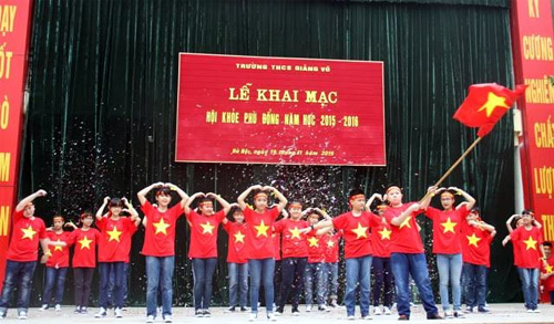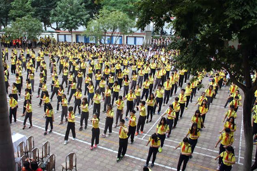 * Gần 1.000 học sinh của Trường THCS Giảng Võ đã có màn nhảy dân vũ ấn tượng sáng nay (19-11). Đây là một trong những tiết mục đặc sắc khai mạc Hội khỏe Phù Đổng cấp trường, cũng là hoạt động ý nghĩa kỷ niệm ngày Nhà giáo Việt Nam 20-11.