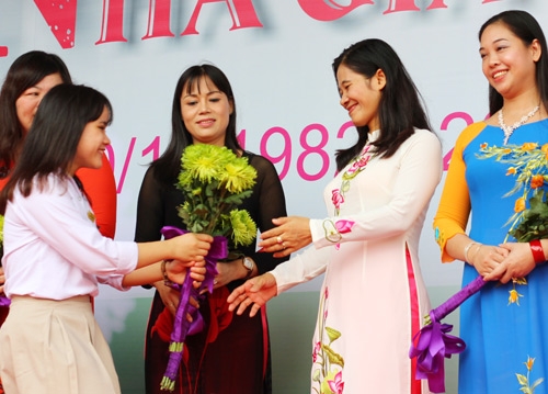 Phát biểu tại buổi lễ, cô giáo Nguyễn Thị Nhiếp, Hiệu trưởng Nhà trường đã xúc động chia sẻ những cảm xúc, tri ân của mình tới các thế hệ thầy cô đầu tiên đặt nền móng cho mái trường và toàn thể các thầy cô giáo đã cùng xây đắp tạo nên diện mạo ngôi trường hôm nay, một môi trường giáo dục toàn diện.