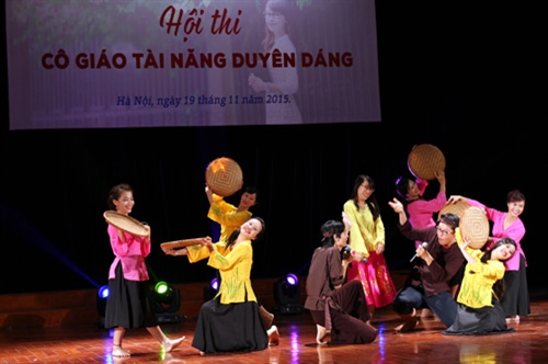 * Tại trường THPT Chuyên Hà Nội Amsterdam, sau phần lễ tưng bừng với sự tham gia của giáo viên và học sinh, các thầy cô đã dành những khoảng thời gian cho “riêng mình” với Hội thi Cô giáo tài năng duyên dáng.