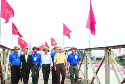 Hòa trong dòng người đó, ông Trần Hữu Đẵn, 70 tuổi, nguyên chiến sĩ công an vũ trang Đồn công an vũ trang Cù Bai, thượng nguồn sông Bến Hải, tâm sự: “Năm nào đến dịp 30-4 tôi cũng trở về nơi đây, để ôn lại kỷ niệm một thời trận mạc, chiến đấu vì độc lập, tự do của Tổ quốc. Nhiều đồng chí, đồng đội tôi đã hy sinh, nằm lại dưới sông này…”. Còn ông Trần Hữu Lý, nguyên Trưởng Công an xã Vĩnh Sơn bên bờ sông Bến Hải những năm chiến tranh, đã kể cho tôi nghe về những năm tháng ác liệt đó: Ông và các đồng chí cán bộ địa phương thường xuyên phối hợp với Đồn công an vũ trang Hiền Lương chuyển thư, bưu thiếp của nhân dân hai miền gửi qua giới tuyến. Đến khi giặc Mỹ tiến hành cuộc chiến tranh phá hoại, ông trực tiếp tham gia chiến đấu. Ông Lý nói: “Được sống đến ngày hôm nay để chứng kiến những ngày hội trọng đại của đất nước như thế này, với tôi là niềm hạnh phúc lớn lao!”.