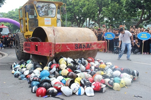 Tiêu hủy 1.000 mũ bảo hiểm không đạt chất lượng.