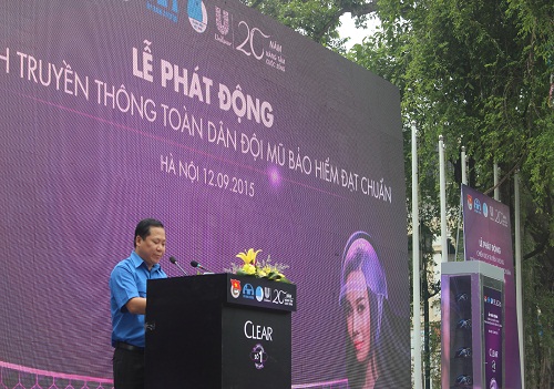 QĐND Online – Sáng 12-9, tại Hà Nội, Trung ương Hội Liên hiệp Thanh niên Việt Nam phối hợp với Ủy ban An toàn giao thông Quốc gia và Công ty Trách nhiệm hữu hạn Quốc tế Unilever Việt Nam – nhãn hàng dầu gội trị gàu Clear đã tổ chức Lễ phát động Chiến dịch truyền thông toàn dân đội mũ bảo hiểm đạt chuẩn 2015.
