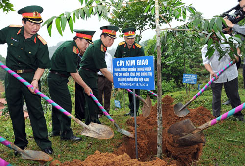 Trung tướng Nguyễn Trọng Nghĩa và các đại biểu trồng cây lưu niệm tại khu di tích lịch sử sinh thái ATK.