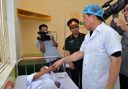 Trung tướng Nguyễn Trọng Nghĩa thăm bệnh nhân mổ đục thủy tinh thể tại xã Phú Đình, huyện Định Hóa, tỉnh Thái Nguyên.