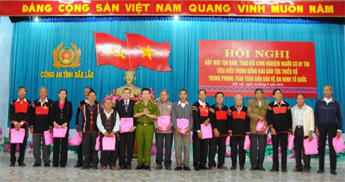 QĐND Online - Ngày 16-9, Công an tỉnh Đắc Lắc tổ chức Hội nghị tọa đàm, trao đổi kinh nghiệm người có uy tín tiêu biểu vùng đồng bào dân tộc thiểu số trong Phong trào “Toàn dân bảo vệ an ninh Tổ quốc năm 2015”. Tham dự có 161 già làng, trưởng bản, người có uy tín trong đồng bào dân tộc thiểu số toàn tỉnh.
